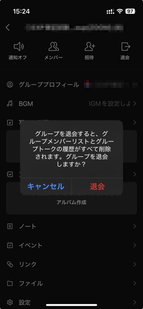 STEP3:対象グループを開き、「退会」を選択