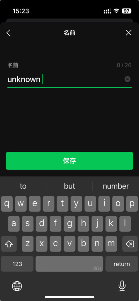 プロフィールの「名前」欄をタップし、「unknown」と入力して保存します。